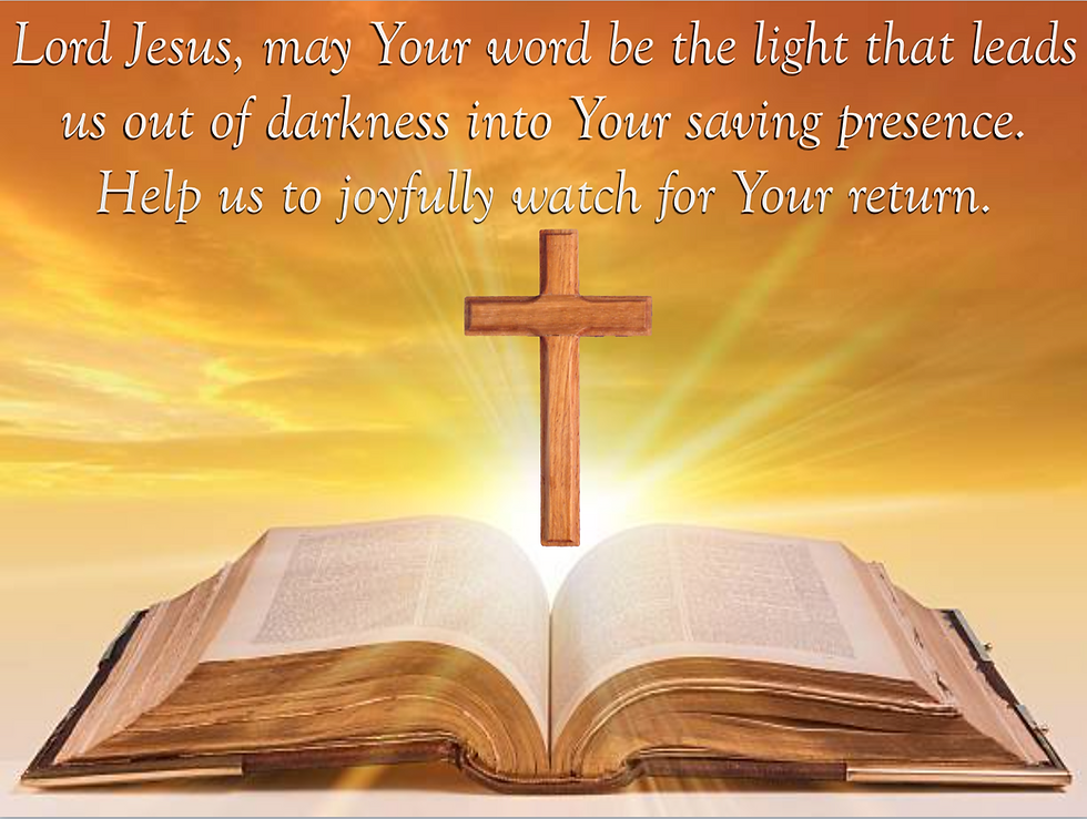 Lord Jesus, may Your word be the light that leads us out of darkness into Your saving presence. Help us to joyfully watch for Your return. Amen.